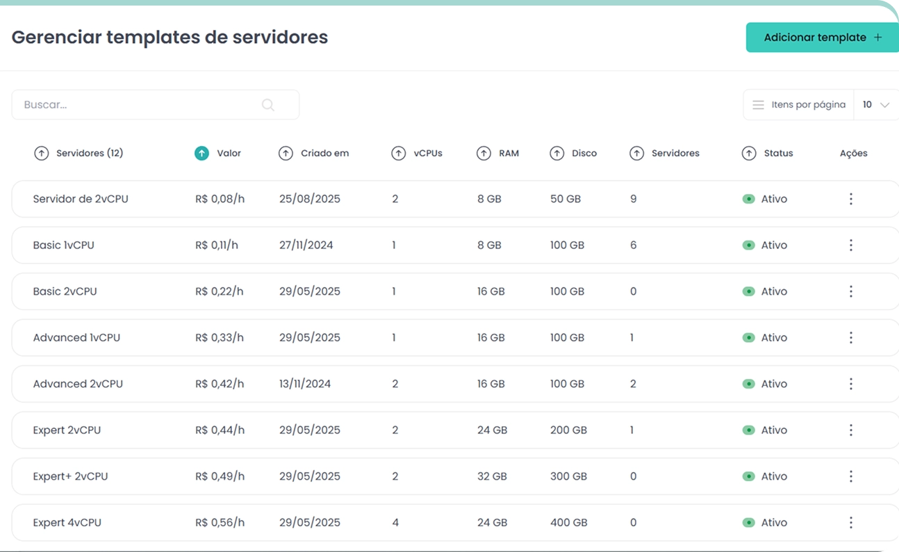 Cadastre e sincronize servidores. Espelhe sua infraestrutura por região e opere tudo a partir de um único painel.